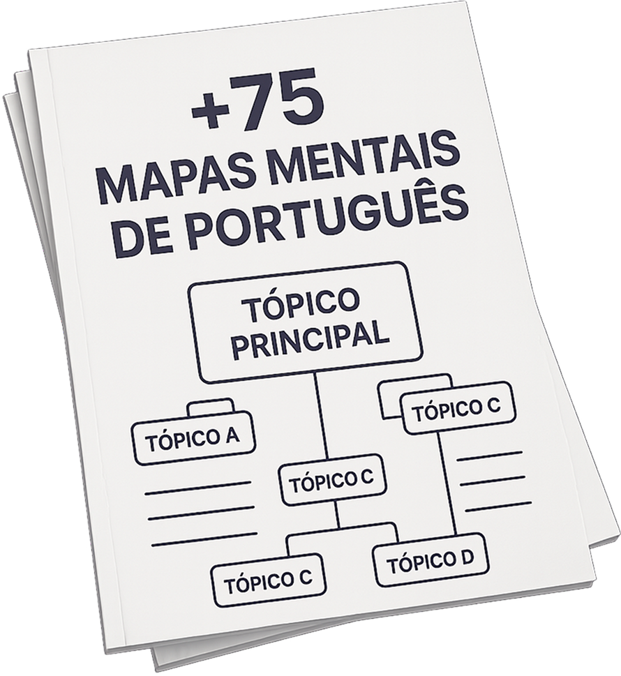Você terá em mãos mais de 75 mapas mentais de português dos assuntos mais cobrados no dia da prova